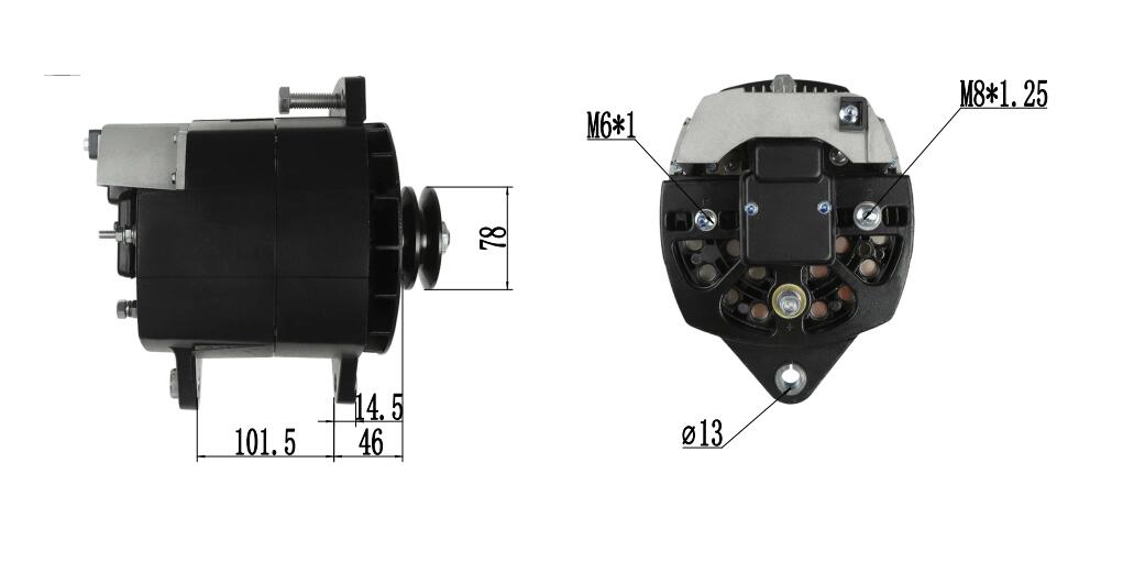 24V 150A Prestolite stilus alternator machinator ut directus substitutio applicationum gravium officiorum, incluso Yuchai YC6A et YC6G machinamenta Diesel, Sinensium transitum et negotiationes intercessio qualia sunt Yutong ZK6118HG, Draco Aureo XML6121E1A, Zhongtong LCK6112G, et unitates ex Thermo Rege refrigerationis transportare